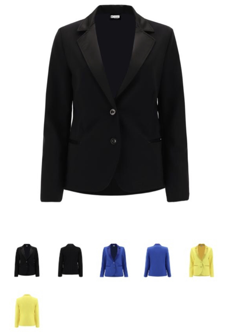 スタイリッシュでエレガントなこのレギュラーフィットのブレザーはサテンで裏打ちされており、ショッキングブルー、ブライトイエロー、クラシックブラックのいずれかをご用意しています。
