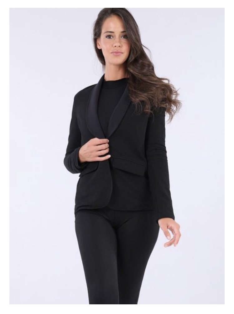 黒のナイロン裏地付きストレッチフリースブレザー。