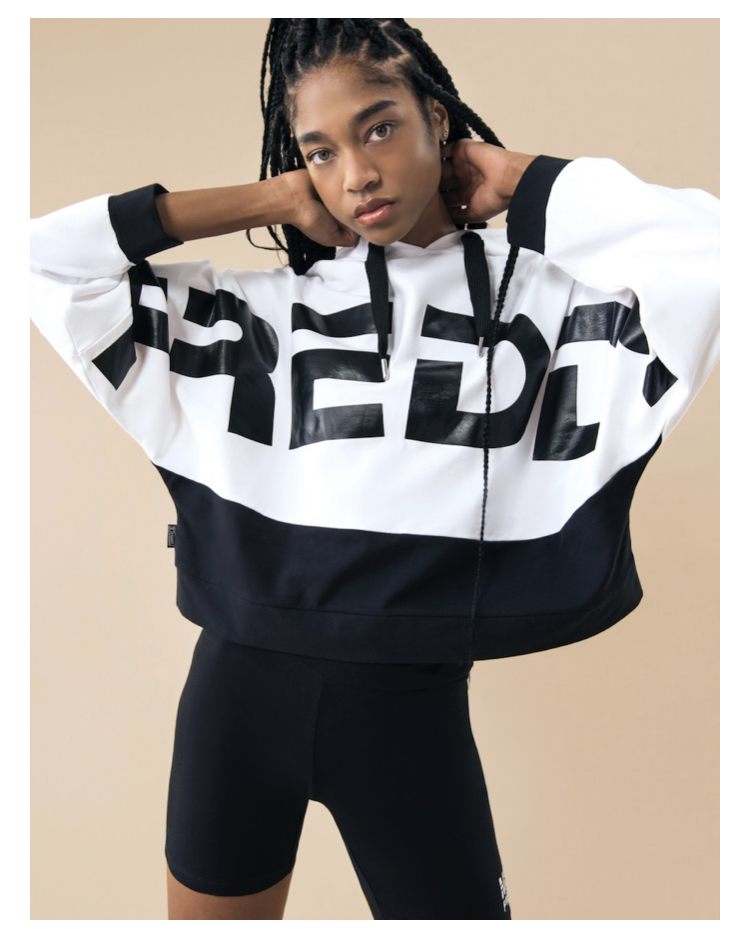 柔らかなフレンチテリーのブラックとホワイトのブロックの特大のスウェットパーカー。ダブルカプチーノと、袖まで伸びる大きく対照的な不透明なFREDDYフロントロゴ。 フードを調節するドローストリング、肩を落としたキモノ袖、クロップドデザイン。 コントラストのある遊びと完璧なスタイルのディテールが強調されたダイナミックなムードを備えたとても快適なウエアは、スタールックで動きの自由の喜びを感じさせてくれるスポーティでカジュアルなウエアです。
