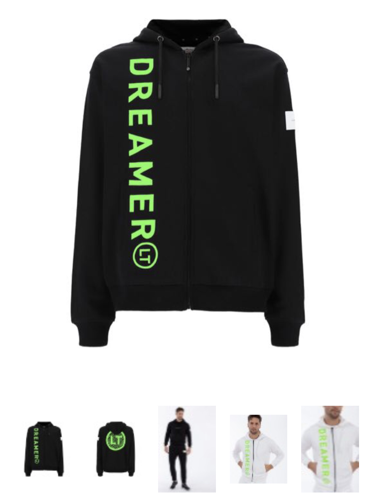 グラフィックがスウェットシャツを定義し、前面に「Dreamer LT」と書かれたマキシコントラストロゴ、背面にLucaTommassiniによるラウンドFREDDYA Choreographyがあり、袖にもLTロゴが付いています。