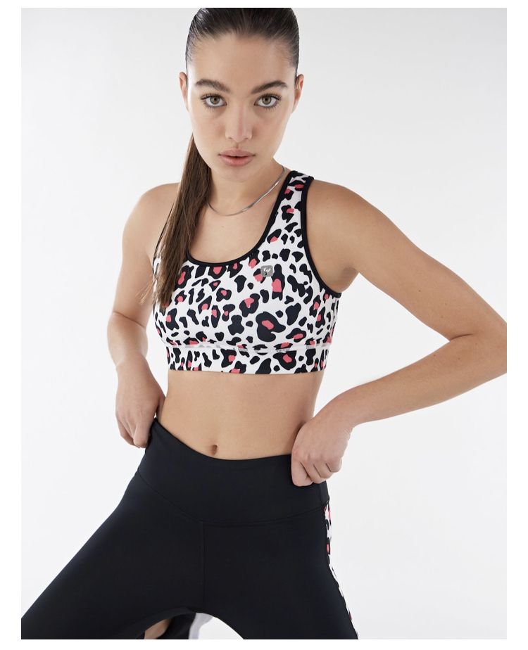 通気性のよいエコフレンドリーなテクニカル素材を使用したスポーツブラ。全面にパターンプリントを施し、フロントにフレディのグリッターロゴをあしらいました。背中にプリントされたロゴが、生地を証明します。中程度のサポート力、クルーネックライン、レーサーバックで、自由自在に動けます。