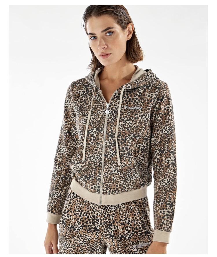 November 26, 2022 レオパードフルジップパーカー ソフトなフレンチテリー素材で、アニマル柄とユーズド加工を施したスウェットシャツです。レギュラーフィットで、ドローストリングで調節可能なフード、フルジップファスナー、フロントのカンガルーポケット、裾と袖口のリブが特徴的なモデルです。胸元のキラキラしたフレディロゴが、スポーツシーンからダイナミックなフリータイムまで、あらゆる場面で快適さと自由な動きを提供するこのウェアのスタイルを完成させています。 コットン100%