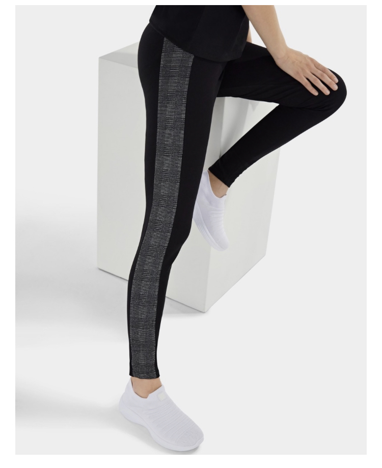 March 6, 2023 レギンス ミラノステッチ素材のブラックレギンス。サイドバンドはプリンス・オブ・ウェールズ社のラメ入りジャージー。ウエストと丈はレギュラーです。洗練された色調で、体のラインに柔らかく沿うような一着。シェービングジャージーのような外観で、伸縮性を維持する生地の特性とデザインにより、スポーツシーンで快適さとスタイリッシュさを必要とするあらゆる場面に最適なアイテムです。 70%ビスコース、26%ポリエステル、4%エラスタン