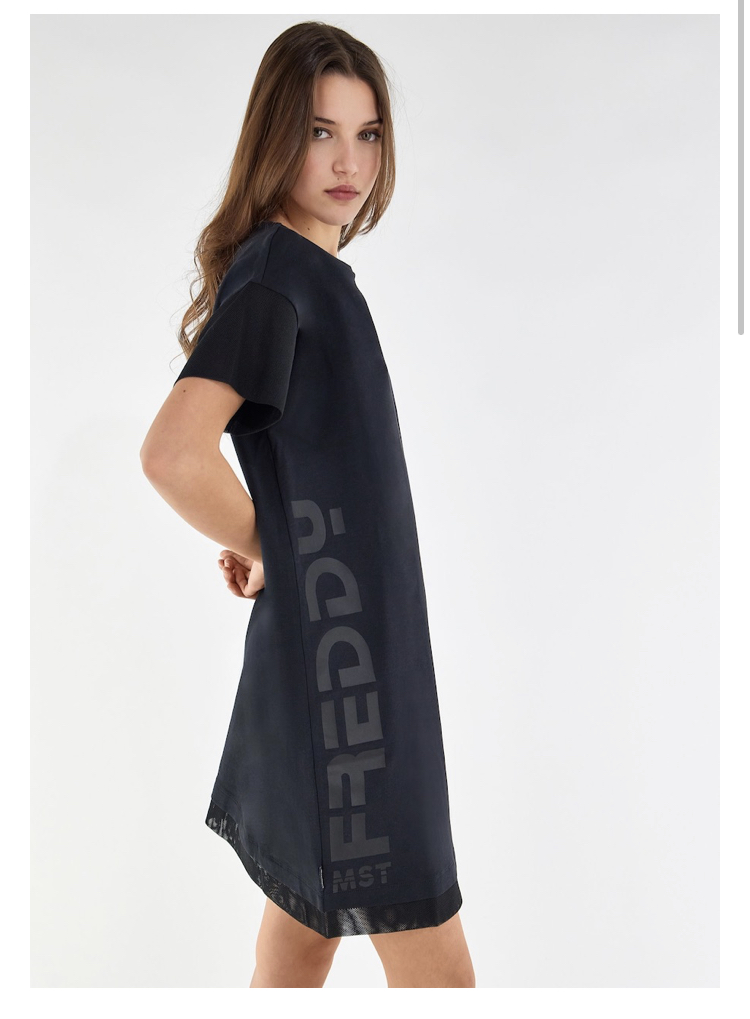 April 9, 2022 ワンピース ライトフレンチテリーとブラックメッシュのディテールが施されたブラックのコンフォートフィットドレス。片面にFREDDY MSTトーンのマットな縦型ロゴがデザインされています。 ラウンドネックライン、ドロップショルダーのメッシュの幅広の半袖、メッシュインサートのボトムがあります。 着心地がとてもよく快適で動きやすいトータルブラックのウエアです。 N=ブラック 95%コットン 5%エラタン