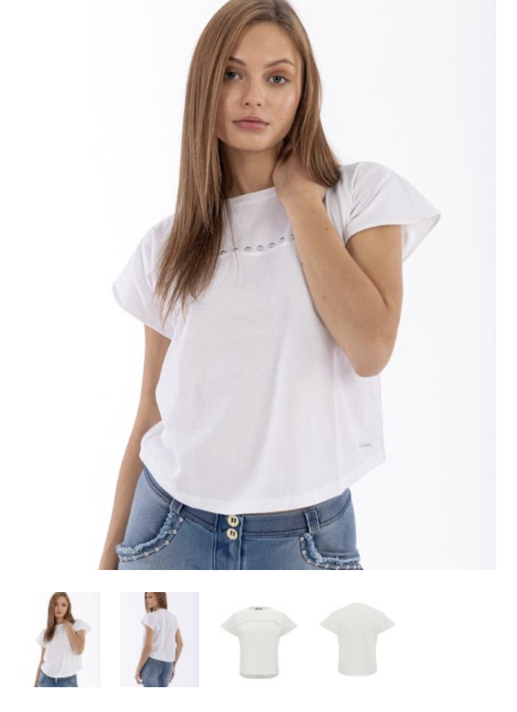 April 27, 2020 半袖シャツ クルーネックとキャップスリーブのレギュラーフィットのジャージTシャツ。 ストレートのヘムラインは後ろが長く、サイドに小さなスリットがあります。 フロント部の縫い目に沿って施され小さなスタッズの装飾が、ウエアを引き立たせエレガントな仕上がりになっています。 綿100%