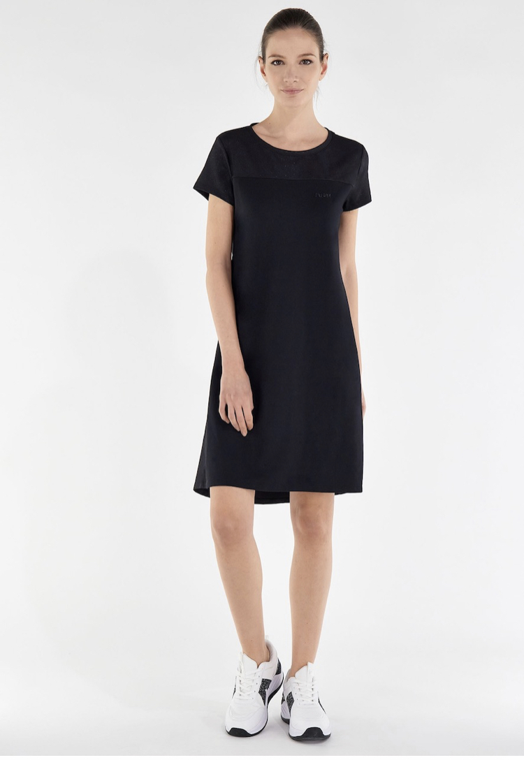 May 4, 2022 半袖ドレス(ワンピース) フレンチテリーモーダルにフレアシルエットの半袖のドレス。カラートーンのグリッタージャージに胸に小さなFREDDYのキラキラロゴがスタイルのディテールを完成させます。裾のボディ開口部のラインに沿ったラウンドネックとフレアのスケーターデザインはとてもエレガントで、レギュラーフィットと生地の柔らかな軽さを組み合わせ、一日のあらゆる瞬間を着飾ることができるスタイルで、着ることの喜びを強調してくれます。 N=ブラック 96%ポリエステル4%エラスタン