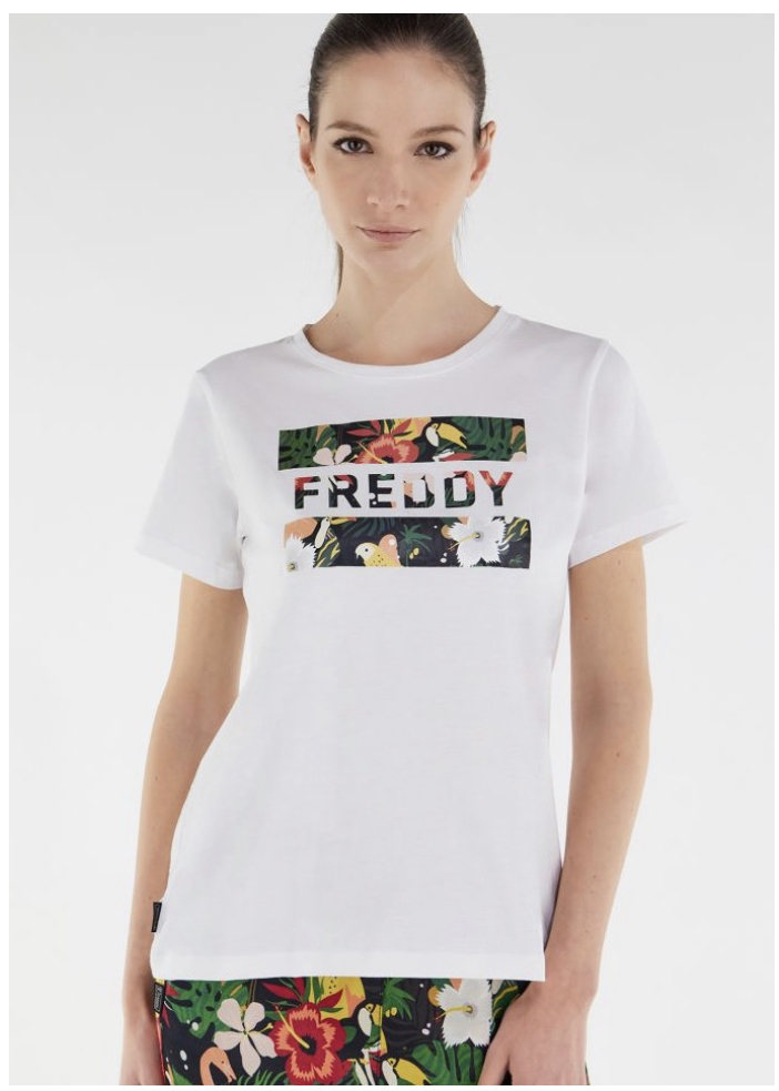 July 3, 2022 半袖Tシャツ(先行予約商品)*フラワーキャンペーン対象商品 フロントにFREDDYの文字が入ったフローラルボックスをあしらったライトウェイトコットンジャージーのTシャツです。このモデルは、クルーネック、ショートスリーブ、ストレートヘムが特徴です。レギュラーフィットで直線的なデザインは、生地の自然な柔らかさと相まって、快適さとスタイルを兼ね備えたこのTシャツは、スポーツ活動にもダイナミックなフリータイムにも最適です。 WFLO21=動物が描かれた柄 WFLO22=赤、黄色、ピンクの花柄 WFLO23=観葉植物の柄 WFLO24=イエロー コットン100%