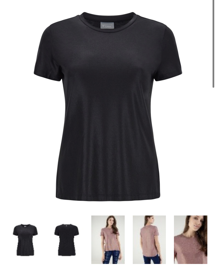 ストレッチコーティングビスコースジャージーで、着心地がよく、特に光沢のあるグリッターが特徴的なエレガントなTシャツです。クルーネック、ショートスリーブ、ストレートヘムです。バックネックの下に施されたゴールドのFREDDYロゴプレートが、スタイルのディテールを完成させています。直線的なデザインでありながら、グラマラスな色調で、レギュラーフィットと柔らかな生地が織りなす着心地と自由な動きを楽しめる一着です。