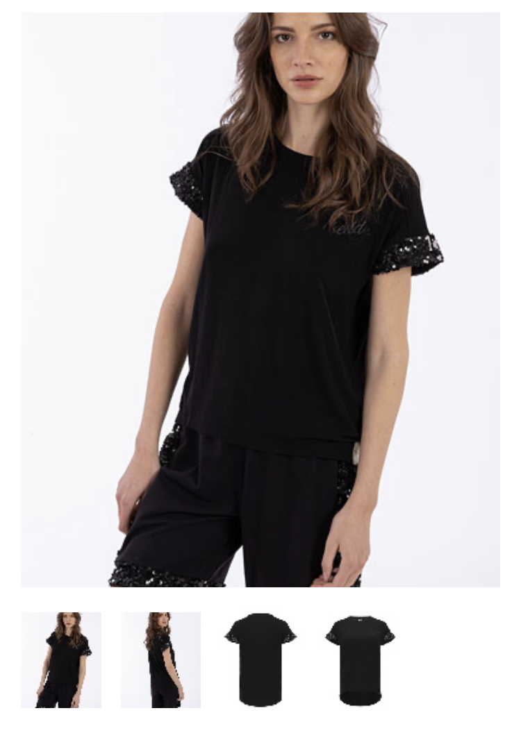 April 8, 2020 半袖Tシャツ ライトブラックのビスコースジャージー、植物糸を使用した半袖Tシャツ。ワイドなコンフォートフィットとクルーネック。 背面の中央の縫い目に特別なファッションタッチを施し、丸みのある底を長くし、袖の縁にスパンコールのインサートをあしらい、前面のフレディレタリングをファブリックの色調で装飾しています。 94%ビスコース6%ポリウレタン