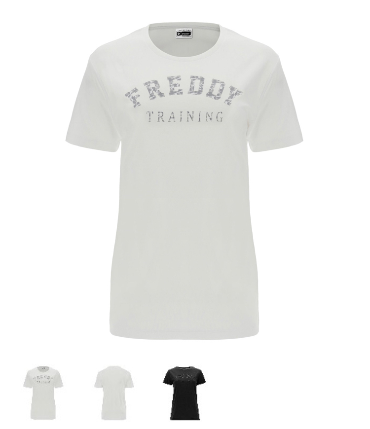 フロントにカラートーンパターンのFREDDY TRAININGをあしらったライトコットンジャージーのTシャツ。