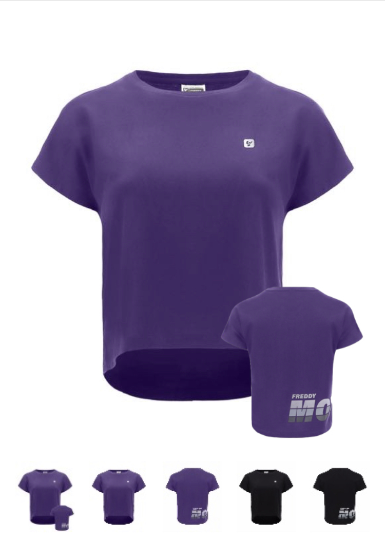 May 7, 2020 半袖Tシャツ レタリングのモチーフが入ったコットンジャージーのショートクロップトップTシャツ。 背面はタイポグラフィックのカラーグラデーションでデザイン、アクション×動き×スタイルが信条のフレディスピリッツを思い起こさせます。 クルーネック、ショートキャップスリーブ、ストレート裾。スポーツやレジャー時のあらゆる動きに自由に対応できるように作られた、快適で着心地が良く、ダイナミックなウェアです。 50%綿50%モーダル E31 = PURPLE AMETHYST N = BLACK