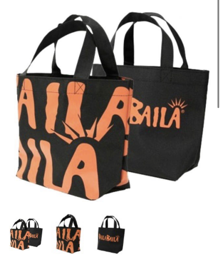 August 21, 2021 BAILA BAILA小バック2種(単品) BAILA BAILA小バック レッスンの際に持ち歩きやすいコンパクトサイズで、ペットボトル、タオル、お財布を入れるのにぴったりのサイズです。 デザインは2種類。厚手のしっかりした素材で、できています。 (サイズ共通 幅:約29センチ、高さ:約19センチ、約奥行:10センチ) NA:ビッグロゴ:黒地にオレンジのBAILA BAILAロゴマークがデザインされています! N:ノーマルロゴ:定番の黒地にオレンジのBAILA BAILAロゴマーク入り!